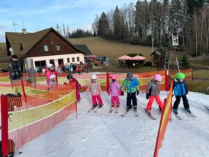 o s sebou: seřízené lyže nebo snowbord, helma, boty na ven, do tělocvičny a bačkorky, další dle dodaného seznamu